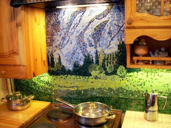 Для отделки зоны фартука лучше использовать стеклянный фартук или специальные панели. Дело в том, что фартук из плитки или мозаики имеет много швов, в которые со временем забивается жир и грязь. Отмывать такую поверхность будет очень трудно.