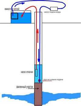 В качестве отсасывающего агрегата здесь следует использовать погружной или полупогружной дренажный насос или грязевую помпу (можно даже и ручную). Для подачи жидкости в шахту тоже можно использовать точно такие же приборы, главное, чтобы струя разбивала осадочные породы.