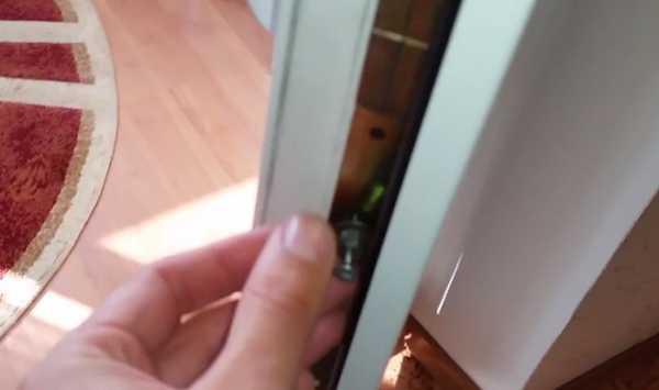 - Следующим шагом прижимаем створку максимально плотно к петле и возвращаем ручку в горизонтальное положение. Дверь исправлена.