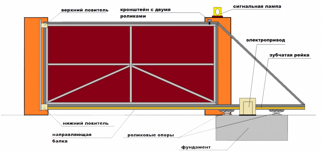 Конструкция откатных ворот схемы