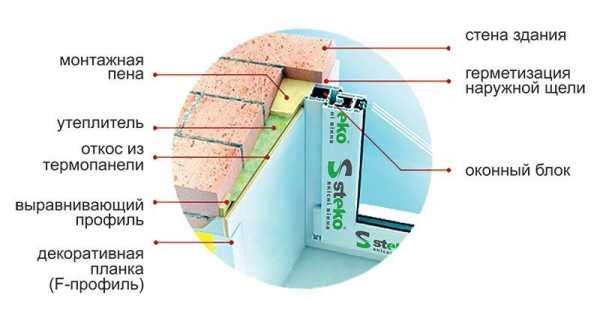 Откос защищает монтажную пену от разрушенияМонтажная пена – это пористый материал, который утепляет шов, но вместе с тем способен впитывать влагу и разрушаться под ее воздействием. Если пена будет надежна закрыта, то можно не переживать, что со временем окна будут запотевать или промерзать в зимний период.