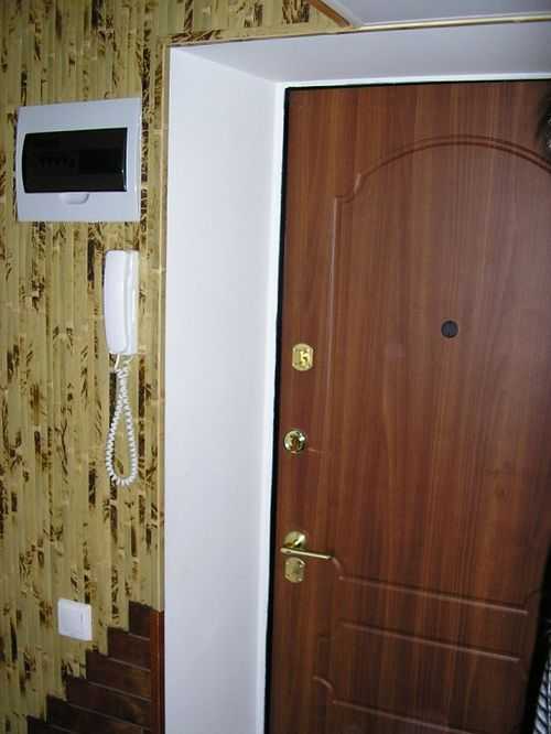 Такой вариант откосов отлично подходит для установки освещения и выключателей непосредственно в дверной проем или над ним. Так можно будет освещать прихожую непосредственно при входе в квартиру. Кроме того, при каркасной конструкции откосов легче будет провести впоследствии такие коммуникации как проводной интернет или кабельное телевидение.