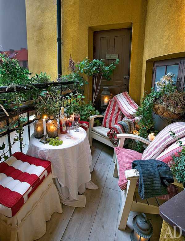 - Если терраса маленькая, то мебель может быть такая: пара кресел, стулья и столик. Хорошим вариантом для такого случая будет складная мебель;