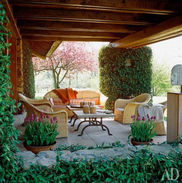 Очень важным элементом декора террасы на даче, является озеленение.