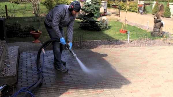 При укладке блоков на сухую цементно-песчаную смесь брусчатка проливается водой