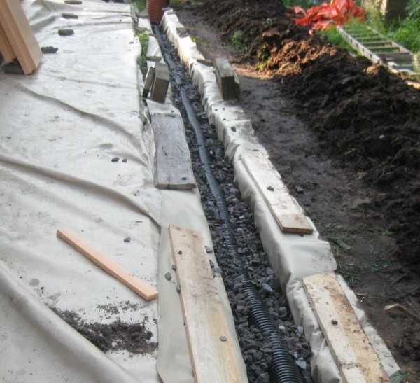 Дренажная система по периметру отмостки спасет фундамент от подтопления - Поверхность грунтуется и просушивается.