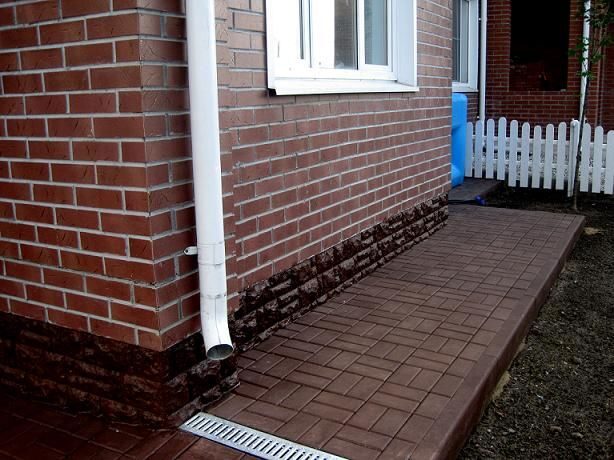 Благодаря наличию защитного покрытия не происходит вспучивания почвы даже в самые сильные морозы, а влага не проникает в бетонный фундамент. Ну и, кроме того, такое покрытие из плитки улучшает общий дизайн дома и придает завершенность всему строению в целом.