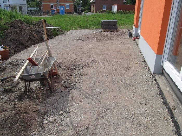 (проделана большая работа, чтобы выровнять область щебня и песчаной подушки)