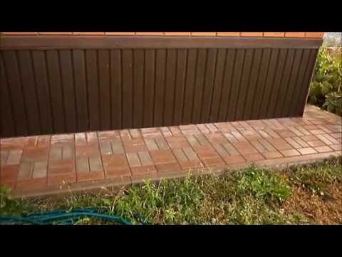 Далее вам предлагается пошаговая инструкция о том, как сделать отмостку вокруг дома из тротуарной плитки своими руками на видео.