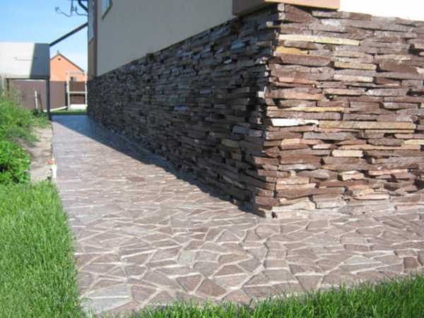 - Декоративное покрытие – наиболее популярным материалом для отделки отмостки является тротуарная плитка. Из-за многообразия форм, размеров и оттенков цвета, она способна придать этому элементу яркие и привлекательные акценты.