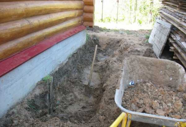 - бетон. Формируется опалубка своими руками вокруг дома и заполняется прочным и водонепроницаемым бетонным раствором;