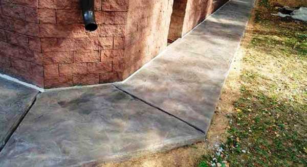 - ширина бетонной дорожки. Ее минимальный размер не должен быть меньше 60 см. Увеличение ширины до 1 м позволит комфортно перемещаться вокруг здания;