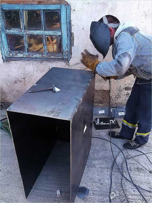 - Из стального листа посредством болгарки вырезается четыре стенки котла. Если не удалось достать жаропрочную сталь, можно использовать простую, но в этом случае стенки должны быть двойными.