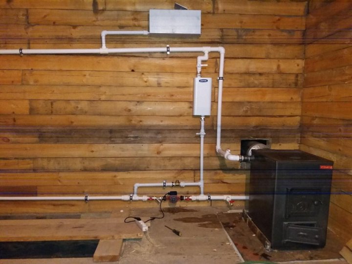- На небольшом удалении от котла, в самой высокой точке, врезается расширительный бачок.