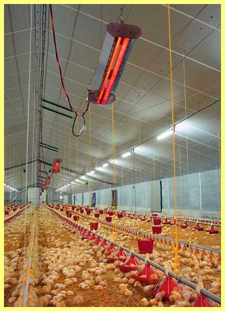 Это очень удобные приборы в плане эксплуатации. Инфракрасные обогреватели нагревают не воздух в помещении, а окружающие их предметы. Это служит гарантией сохранения тепла внутри птичника.