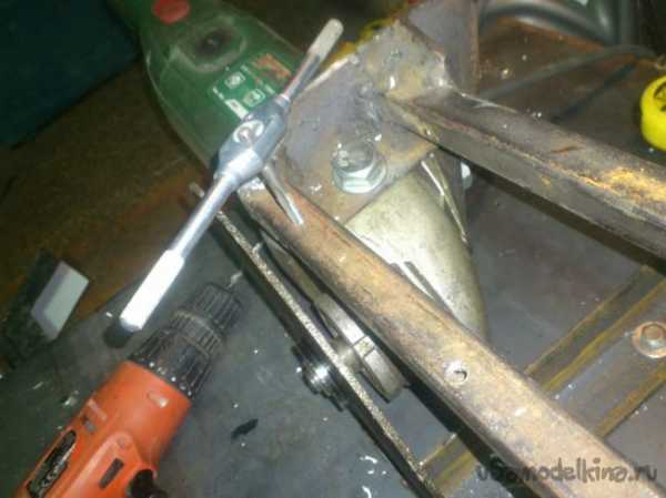 После чего сложил половинки, склепал и закрепил на тяге, просверлив отверстия и нарезав резьбу М6: