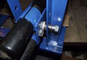 - К концу трубы также приварите отрезок металлического уголка небольшого размера. Он монтируется на подвижный вал. Чтобы обеспечить требуемую стабильность станка, защитить его от вибраций и колебаний, закрепите прочно уголок на рабочем столе, на полу или верстаке.