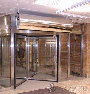 Установка воздушных завес на револьверных дверях может быть как скрытого, так и обычного монтажа