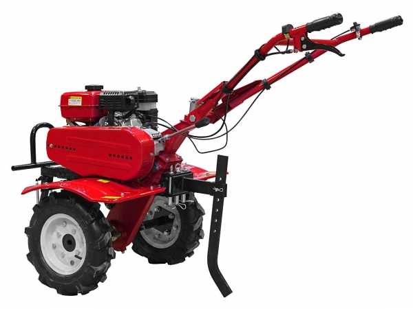 Двигатель изготовлен по лицензии Honda, поэтому он надежный и качественны. Благодаря валу отбора мощности вы можете использовать любое навесное оборудование. Агрегат легкий, легко управляемый и маневренный, поэтому он отлично себя покажет даже на небольших участках. Вы можете обработать землю шириной от 80 до 100 сантиметров и глубиной — до 30 сантиметров. Имеется четыре скорости — 3 вперед и одна назад. Мощность двигателя составляет 7 лошадиных сил.