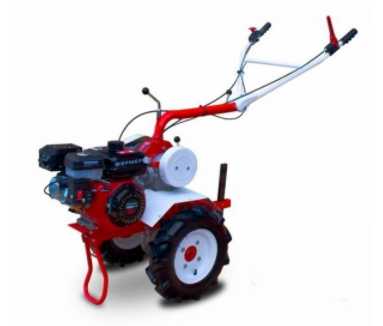 Мотоблок для обработки различных по гранулометрическому составу типов почв в среднеразмерных и крупных агрофирмах (до 5 га). Функционирует от мотора GF 168 F-1 собственного производства, работающего на бензине марки АИ-92. Имеет отлично скомпонованную конструкцию для многочасовой работы с минимальной нагрузкой на плечевой пояс оператора. Благодаря компактной конструкции и штатными пневматическими колесам с грубым протектором (или металлическим грунтозацепам) агрегат преодолевает на своем пути любые препятствия. Комплектуется универсальной сцепкой для присоединения навесного оборудования любых торговых марок.