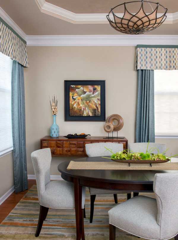 Круглый стол подойдет ко многим стилям и всегда выглядит изящно.Совет! Самая удобная модель круглого стола — диаметр которой не превышает 1,5 метра. Если установить обеденный стол больших размеров, то людям, сидящим за ним, будет неудобно постоянно дотягиваться к расставленным блюдам.