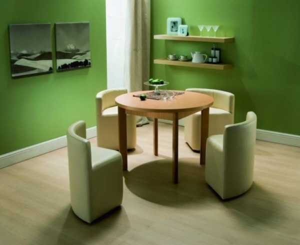 Не маловажное значение имеет то, сколько места займет стол в разборном состоянии. Так если, ваша кухня имеет большую площадь, то можно купить стол прямоугольной формы, а так же стулья изготовленные из идентичного материала как сам стол. А вот если, площадь вашей кухни имеет скромные размеры можно приобрести овальный столик с раздвижной конструкцией.