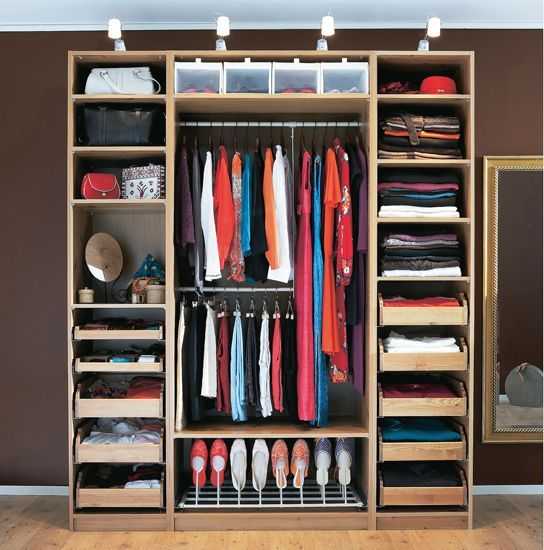 - Каждую стену можно отделить для одного члена семьи, что позволит значительно быстрее найти нужную деталь и не перемешивать одежду.