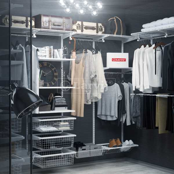На рынке можно купить системы хранения, предназначенные для небольших гардеробных. Они используются для хранения следующих вещей: