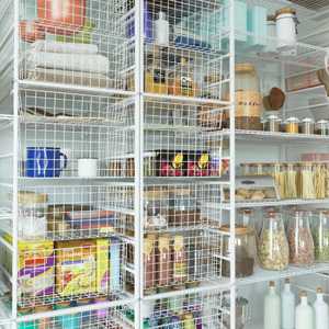 Особенности П-образной гардеробнойТакой вариант обустройства гардеробной назван по форме, которую образует система хранения, установленная на три стены помещения. Обычно такие гардеробные монтируют в специальных гардеробных комнатах или кладовках, где возможности помещения позволяют использовать такую конфигурацию системы. Такая гардеробная по сравнению с угловыми системами или системами на одну стену способствует тому, чтобы пространство было задействовано по максимуму. В П-образной гардеробной можно хранить огромное количество вещей, но при этом она требует более тщательного и продуманного наполнения. Насыщенность комплектующими, их размер и расположение относительно друг друга не должны мешать удобству эксплуатации системы. Как обустроить П-образную гардеробнуюПрежде чем начинать продумывать проект гардеробной, необходимо знать точно размеры помещения: высоту, ширину и глубину, а также длину каждой стены. Важной будет информация о расположении двери, т. к. ее открывание/закрывание при некорректно составленном проекте может усложнить эксплуатацию системы. Чтобы гардеробная не была слишком тесной, необходимо учесть место, где будет располагаться выбирающий или примеряющий одежду человек. Обратите внимание и на то, что при П-образной конфигурации системы нужно предусмотреть беспрепятственное выдвижение корзин или брючниц. Размещение на одном уровне с ними по перпендикуляру других элементов помешает их полноценному использованию. Заранее определитесь с тем, что, на какой стене и на каком уровне вы будете хранить. Зонируйте пространство по назначению/ видам одежды/ цветам. Это облегчит планирование системы и ее эксплуатацию. Варианты П-образных гардеробныхП-образная гардеробная для прямоугольного пространства.По центру можно разместить высокие стеллажи с корзинами, которые разделяют помещение на мужскую и женскую половины (как вариант). Если позволяет пространство, можно задействовать стену прямо до потолка. Ряды сеточных полок используются для хранения обуви (можно заменить специальными обувными полками). Хранение пиджаков, брюк, платьев, юбок также разделено на секции с перекладинами.