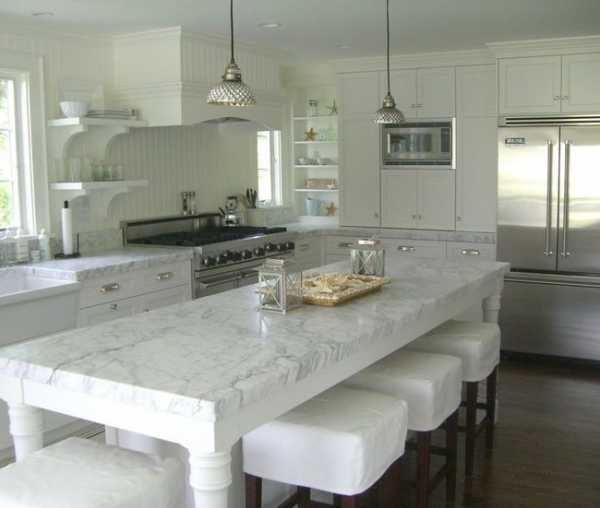 - Белые планки, установленные в кухне, со временем приобретают характерный желтый оттенок.