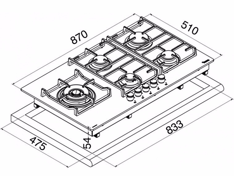 Основными габаритами варочной поверхности являются ее ширина и глубина. Толщина устройства менее важна, так как обычно совпадает с толщиной столешницы и составляет 4-6 см.