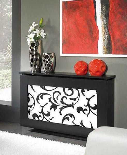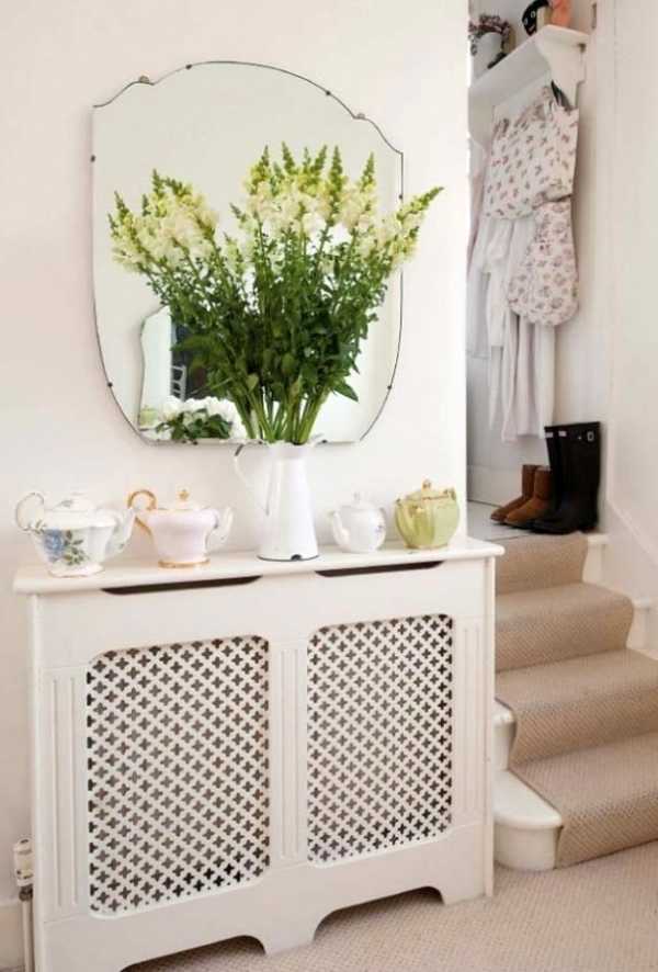 Навесные экраны с крышкой или короба также можно использовать как оригинальную тумбу или подставку, особенно в летнее время. В отопительный сезон не стоит заставлять крышку предметами, чтобы не препятствовать подъему теплого воздуха, а также не провоцировать нагревание стоящих предметов, особенно если они из пластика.