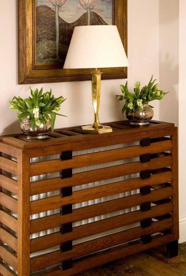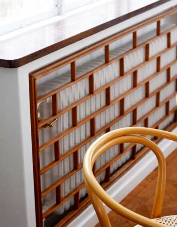Деревянный короб для радиатора отопления в интерьере