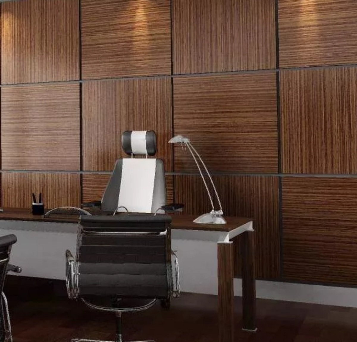 - Шпонированные. Максимально натуральный способ украшения: на полотно из древесины наклеивается тонкий шпон, позволяющий добиться эффекта природного материала практически за копейки.