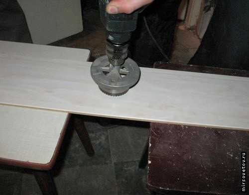 - Противоположный конец панели фиксируется к рейкам саморезами в предварительно просверленные отверстия 8-10 мм в диаметре, чтоб шляпка была «утопленной» на поверхности МДФ.