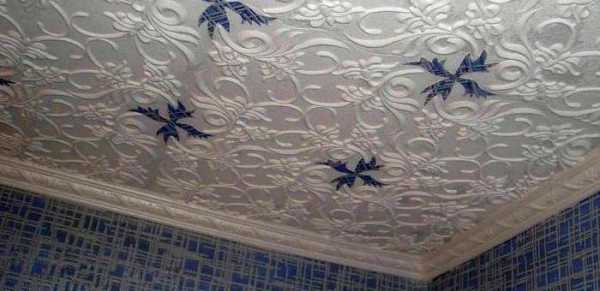 Дополнительно украсить потолочную поверхность можно изысканными узорами и красивой лепниной