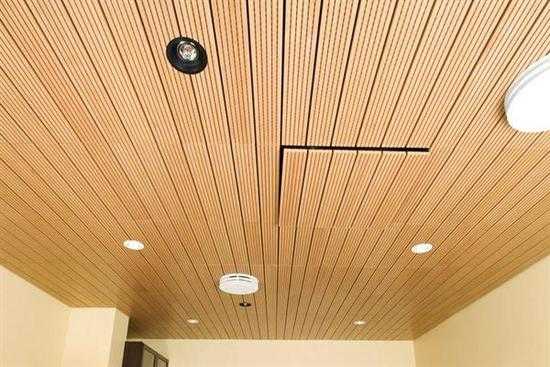 Потолок из МДФ панелейЕсли необходимо установить подвесной потолок в помещениях с высокими требованиями звукоизоляции и звукопоглощения, то применяют акустические панели. Основные места установки таких потолков: кинотеатры, театры, производственные помещения, спортивные и развлекательные залы. Акустические панели могут быть изготовлены из вспененного меламина, перфорированного металла с наполнителем, стекловолокна. Акустические изделия позволяют создать комфортную звуковую среду, защитить помещение от шума и гулкости. Акустические плиты производятся различных размеров и цветов, позволяют создать индивидуальный стиль в интерьере. Внутри быстровозводимых домов из сип панелей такие потолки улучшают звукоизоляцию внутренних комнат.