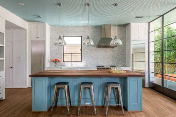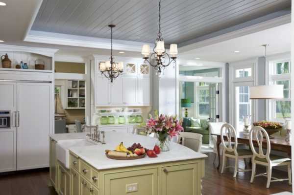 Красивый практичный потолок в интерьере классической кухни