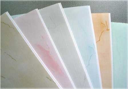 — панели ПВХ с нанесенным рисунком или в цвете (исполнение в разнообразной цветовой гамме с определенным декором)