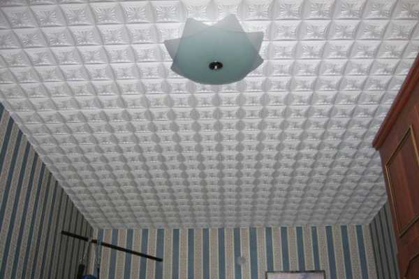 Потолок, облицованный пенопластовой плиткой