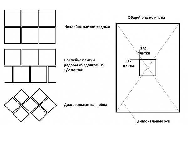 - Вразбежку – каждый следующий ряд смещается на полплитки