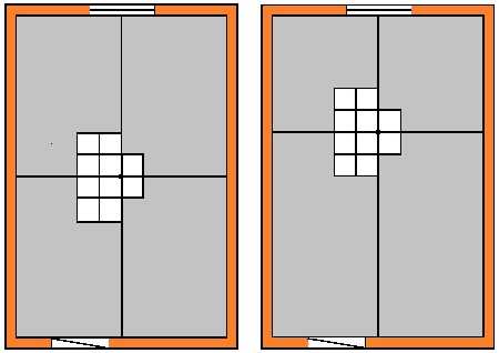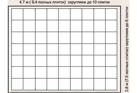 - Если при расположении у стены остается зазор равный менее половины плиты, значит, одна штука покроет два подобных участка. Если же промежуток составляет более 25 см, тогда следует знать, что в расход пойдет целая плитка;