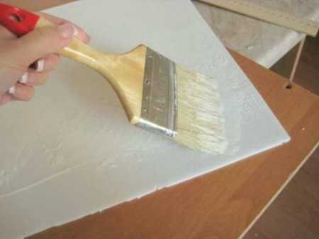 - Клеящую смесь можно приготовить самостоятельно. Для этого понадобится полимерная шпатлевка (лучше на акриловой основе), которая разбавляется водой, до тех пор, пока не получится густой как сметана. На этапе замеса добавляется немного ПВА. Замешивать подобный раствор рекомендуется небольшими порциями, чтобы он не успел затвердеть в процессе работ.