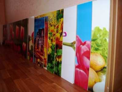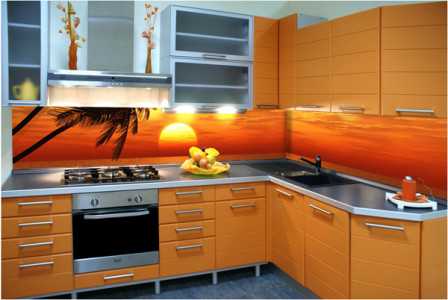 Новшеством на рынке можно назвать панели с рисунком. Такие изделия не будут иметь ничего общего с дешевым пластиком, который когда-то был так популярен в отделке общественных зданий. Теперь поливинилхлорид изготавливают с добавлением смягчителя и украшают невообразимыми рисунками, пейзажами и изображениями. Использовать пластиковые панели можно как для декорирования общего пространства кухни, так и для отдельной рабочей зоны. Можно выбрать и кухонные гарнитуры с пластиковыми цветными панелями.
