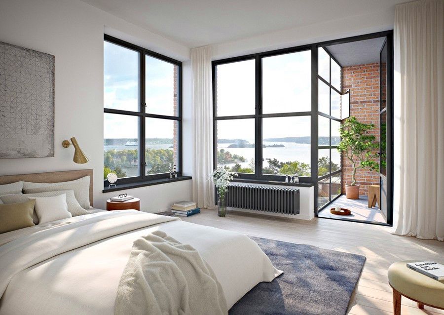 Французское окно открывает красоту окружающего пейзажа. Прекрасные виды часто увеличивают стоимость недвижимости и делают дом более привлекательным. Масштабное остекление расширяет пространство, а также делает помещение светлее.