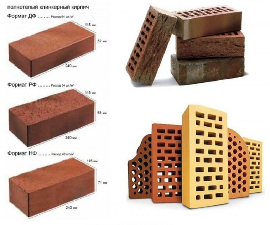 Это очень прочный материал, который бывает полнотелым и пустотелым. По размерам можно встретить одинарные, полуторные, брусок и еврокирпичи.