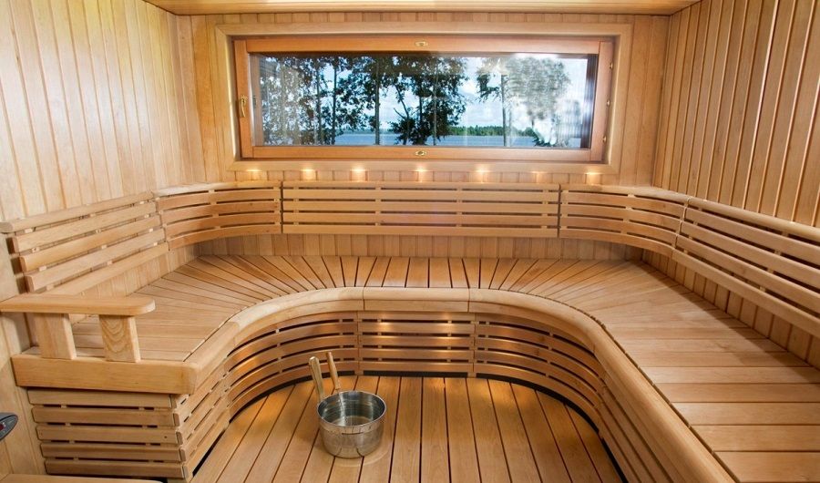 После отделки деревянные стены парилки тщательно шлифуются и оставляются в естественном виде.