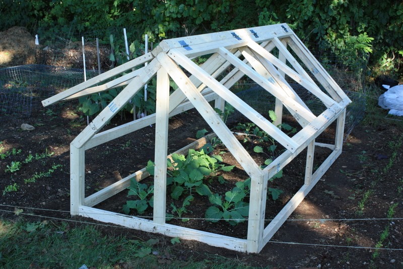 Обычные 1/2-дюймовые трубы из ПВХ использовались для изготовления недорогих садовых обручей, чтобы защитить растения от прямых солнечных лучей. (через Б. Джейн Гарденс)