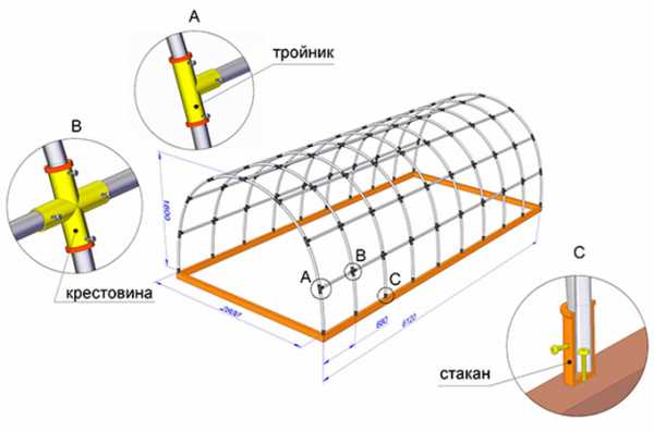Для изготовления дуг выбирают трубы большого диаметра. Среди достоинств такой конструкции можно отметить: