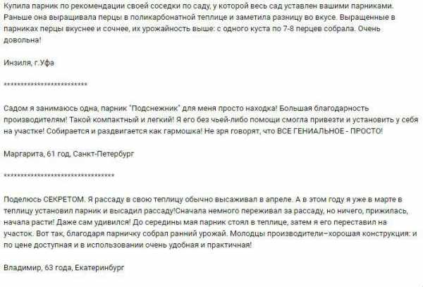№1С того момента, как начал использовать на своем дачном участке парник, урожай увеличился в три раза, затраты на рассаду исчезли, работая на выходных на даче успеваю еще продавать излишек овощей.